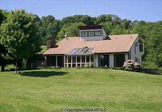 Passive Solar Contemporary home that lets you have low utility costs while GOING GREEN! Beautiful views from walls of windows and many sliders to the deck. There are Soaring 2 story ceilings in the great room which is used as living, dining and family room spaces. Lots of light and cross breezes. 2 master bedrooms, one on first level. Professionally landscaped. Bring the horses or keep these.