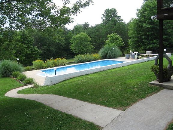 WELL MAINTAINED LOG HOME WITH LOW MAINT. PLUS 18x36 INGROUND SWIMMING POOL - OVER 2 ACRES of PRIVACY - REST on YOUR LARGE DECK OVERLOOKING THE SUNSET! Convenient to SHOPPING AND DOWNTOWN, - NEW TILE FLOORS on MAIN LEVEL & HARDWOOD FLOORS IN MASTER BEDROOM, HALL, & BATH - A BONUS VINYL SIDED BUILDING WITH 1170 Sq. Ft. WHICH COULD Be A GUEST HOUSE or INLAW APT. COMPLETE WITH KITCHEN, BATH, GREAT RM. AND ONE BEDROOM, PLUS TILE FLOORS. - (CURRENTLY RENTED) - LOG HOME HAS 23' MASTER BEDROOM AND EXTRA STORAGE - LOWER LEVEL HAS NEW TILE FLOORS - POOL is OPEN AND READY FOR IMMEDIATE USE!
