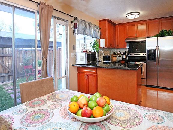 Clean, bright two-story end unit townhouse in Rancho Coronado. Kitchen updated with granite countertops, tile backsplash, and stainless steel range/oven and refrigerator. Recently landscaped private back patio. Updated bathrooms - one partial bath, one full bath with tiled shower, updated sink/faucets. Faces open greenbelt with mature trees. Two carport spaces.