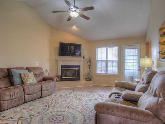 Bright & cheery 3 bed/2 bath gem in Cedar Ridge. New wide-plank flooring in dining room & the living room that has cathedral ceilings & a wood-burning fireplace. Inviting covered front porch & back deck surrounded by shade trees & privacy fence. Master suite has two closets & jetted tub. Carl Junction schools. Garage w/storage area. Don't miss this!