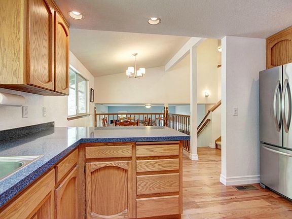 Back on market after seller repaired inspection items. $25K in upgrades on this cul-de-sac beauty. 3 beds, 2.25 baths & 2,051asf. Granite counter tops & stainless KitchenAid appliances. New hardwoods, lighting, baseboards & 3 skylights. Painted inside & out, garage floor coated too! Bright, vaulted ceiling in living & dining. Big family room w/French doors & gas fireplace. All appliances included. Upstairs: Master w/bath & walk-in closet, main bath & 2nd & 3rd beds. Fully-fenced yard w/fountain.