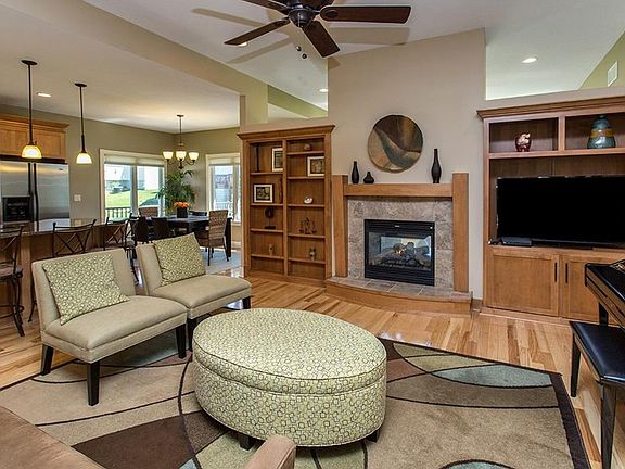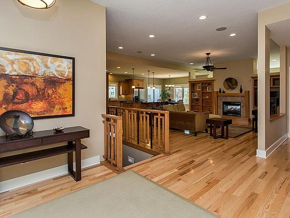 Be sure to check out this very spacious and open ranch plan! With over 3200 square feet there is plenty of room. The first floor features beautiful hardwood floors, open kitchen with stainless steel appliances, center island, granite countertops, and tile backsplash. The family room features a see through fireplace to sun room. Off the sunroom enjoy the maintenance free deck. First floor also includes office/bedroom with french doors and generous master bedroom with walk in closet, private bath with tiled shower, his and her sinks, and jacuzzi tub. The finished walkout lower level features corner fireplace, wet bar, full bath, and three additional bedrooms. Other features include stucco siding, irrigation, central vac, and zoned heating and cooling. Better than new!