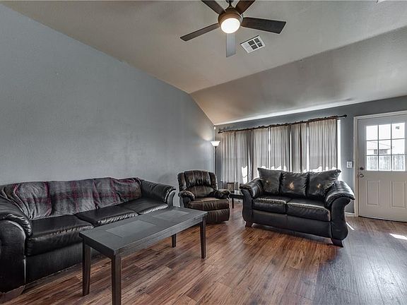 This sharp home in Apple Gardens is ready for new owners! With an open floor plan, this home offers a spacious living area with raised ceilings & a beautiful corner fireplace. Seller has added gorgeous, new laminate flooring in the living room that flows nicely into the dining area. Plenty of natural light fills the home with an abundance of windows as well as a bay window in breakfast nook. The large, private master bedroom offers tray ceilings, double vanities, his/hers walk-in closets, extra storage, & a bay window. Nice sized guest rooms have large, walk-in closets. Roof replaced less than two years ago with high quality CertainTeed's Landmark Max Def Shingles. Full home guttering installed & fresh paint in living areas. In-ground storm shelter located in garage. Community also boasts a park, playground, & splash pad within walking distance! Easy & quick access to I-35, restaurants, shopping, & schools. *Seller is offering $900 carpet allowance!!!*