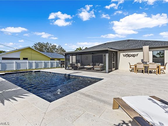 Discover comfort and style in this meticulously maintained 3-bed, 2-bath POOL HOME, ideally situated just minutes from downtown Cape Coral. The focal point of the property is the inviting heated pool with sundeck and LED lighting, added in 2021, set against a vast and fully fenced backyard, creating your own private retreat! The emphasis on quality is apparent throughout the property. From the well manicured lawn to the recently installed roof in 2022 this home is ready to enjoy !The pride of ownership is evident throughout, resulting in a home that seamlessly marries contemporary aesthetics with functionality. Step inside to experience the seamless fusion of contemporary living and refined design. This residence invites you to relax in a space that perfectly balances tranquility and entertainment. Don't miss the chance to make this Cape Coral gem your own—a residence where timeless charm meets thoughtful updates, offering an inviting and comfortable living experience. This property would be a great home for a first time homeowner or a vacation rental. Call to schedule your private showing today!