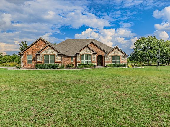 Immaculate and Stunning! This one was built to impress! You will find quality craftsmanship and attention to every detail throughout! Situated on 17.49 Acres with a perfect mix of pasture and trees! Property boasts 5-strand barb wire fencing with pipe corner braces, multiple gated entry points, and small pond ready for your animals! You will fall in love the minute you arrive with the beautiful landscaping, well-maintained yard, and towering mature trees including approximately 42 native pecan trees! Step inside to a spacious open floorplan! The family room centers around a gas log fireplace with raised brick hearth and boasts a multi-layer deep tray ceiling! Enjoy movie nights with the family enhanced by the built in surround sound speaker system! The Kitchen is a chef's delight with double convection ovens, gas cooktop, large center island-breakfast bar, and oversized walk-in pantry with electrical outlets, adjustable shelving, and storage drawers! Dedicated office space with elegant, coffered ceiling is perfect for a home office or flex space! Plantation shutters throughout for added charm and elegance! The primary suite is highlighted by a raised ceiling and plenty of room for reading nook or sitting area! The en-suite bath showcases a large double sink vanity with tons of storage space, barn door accent,