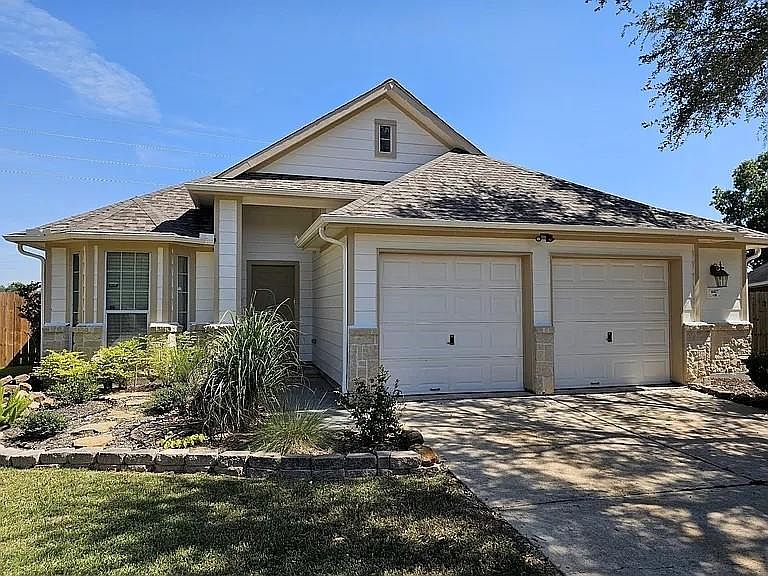 Beautiful 4 bedroom, 2 bathroom, single-story home featuring a 2-car attached garage! Inside, you'll find high ceilings, archways, new carpet in the bedrooms, a formal dining with a bay window, a utility room, and wood laminate in the living room. The eat-in kitchen has a breakfast bar island and stainless steel appliances while the primary bedroom is separate from the secondary bedrooms and has dual sinks, a garden tub, and separate shower. The backyard is huge and includes a covered patio and no back neighbor. Appliances included. This home is located on a cul-de-sac lot with easy access to the neighborhood pool, Hwy 6, and Fort Bend Parkway!