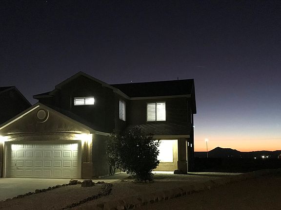 Many upgrades including stunning plantation shutters throughout the home which are not only beautiful but help keep the home cool throughout the summer. Home features 3 possible living spaces for a growing family. As you walk in the front door you have the 1st living space which can be a formal living room which leads into the dining room. There is a 2nd living area (den) on the ground floor with a convenient 1/2 bath for guests. The den also has a snack bar looking into the chef's kitchen with matching appliances and a good sized pantry. The downstairs is done in a luxury vinyl plank flooring and tile for easy cleaning. Spacious under the stairs storage with shelves (perfect for Christmas decorations.) A nice sized laundry room, and a 2 car garage complete the downstairs. Upstairs: You have 3 bedrooms - all with walk in closets. The loft makes a possible 3rd living space - perfect for a game room, office, playroom, or sewing room- you name it. The upstairs hall bathroom features 2 sinks, a separate toilet and bathtub/shower with privacy door so more people can get ready at the same time on those hectic mornings. The Large Master bedroom has a spacious master bath, a soaker tub, dual vanity sinks, shower and separate toilet room for privacy. The home has refrigerated air to keep you cool in the summer, and is located on a larger lot in a cul-de-sac, making for less traffic - perfect for young families. Located conveniently close to shopping, movies, restaurants and schools. 10 minutes to downtown and ONLY 25 minutes to WSMR or NASA. Home was recently re-roofed for peace of mind for years to come. Always smoke and pet free. Stunning views to the west of Picacho Peak, and to the east the Organ mountains, and our famous NM sunsets. A great place to call home!