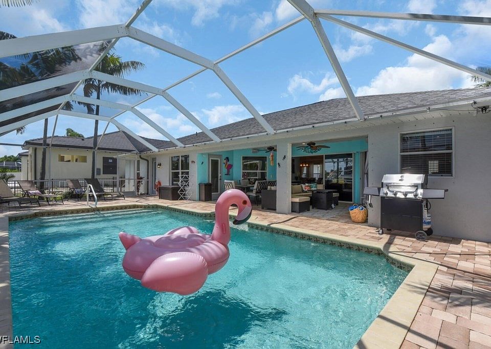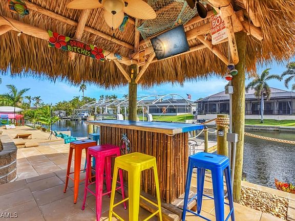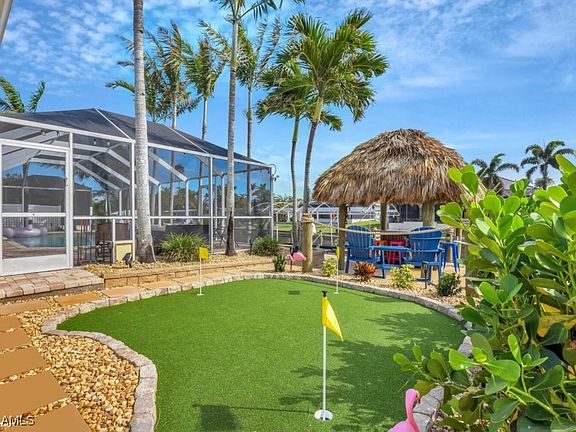 Welcome to Flamingo Villa, your luxurious resort-style retreat nestled in the picturesque surroundings of Cape Coral, FL! As you step inside, you'll be immediately drawn to the stunning lanai and the newly remodeled backyard. the property features three spacious bedrooms all equipped with king beds, smart TVs, and walk-in closets. The master suite is a sanctuary, boasting an en suite bathroom with a luxurious step-in shower, a deep soaking tub for those relaxing evenings, dual sinks, and a private toilet room. The living room is designed for relaxation and entertainment, seamlessly opening into a formal dining area. The living room also features a smart TV, ensuring you can easily stream your favorite shows and movies at your leisure. For the culinary enthusiasts, outfitted with modern stainless steel appliances, elegant granite countertops, and all the essential accessories you'll need, this kitchen is perfect for whipping up anything from a quick breakfast to a gourmet dinner. Just off the kitchen, you'll find a charming breakfast nook that overlooks the lanai, providing the perfect spot to enjoy your morning coffee while soaking in the beautiful views. Now, let's talk about the outdoor space! Step outside onto the expansive lanai, where you'll be greeted by the breathtaking sight of a large heated saltwater pool an oasis waiting for you to dive in and cool off on those warm, sunny days. Furnished with lush seating options, a propane fire table for cozy evenings, and a BBQ grill for those delightful cookouts with family and friends. There's even a Blackstone griddle for those who love to grill! The tiki hut adds a vibrant touch, features a custom bar, beverage cooler, and a smart TV for all your entertainment needs. Gather your friends for some friendly competition on the dartboard, challenge each other to a putting match, or enjoy a game of corn hole all designed to enhance your experience in this fantastic outdoor space. There's plenty of spots for the sun or shade lovers to enjoy! For the adventure seekers, Flamingo Villa comes equipped with everything you need for an exciting day outdoors. You'll have access to fishing equipment, so you can cast your line and catch your dinner right from the nearby waters. The dock is expansive and fish are plentiful! You're guaranteed to spot many fish jumping throughout the day. Four kayaks and four bikes are available for you to explore the beautiful surroundings, and there are plenty of beach toys and chairs to make your beach days extra enjoyable. Don't forget about the pool floats, Giant Jenga, and pool towels all you need to ensure your days are filled with fun and relaxation. Whether you're lounging by the pool, enjoying a drink at the tiki hut, or exploring the local area, Flamingo Villa is designed to be your home away from home. It's the perfect destination for families, friends, or couples seeking a memorable getaway. Pool heat is $25/day or at a reduced rate for stays longer than 30 days.