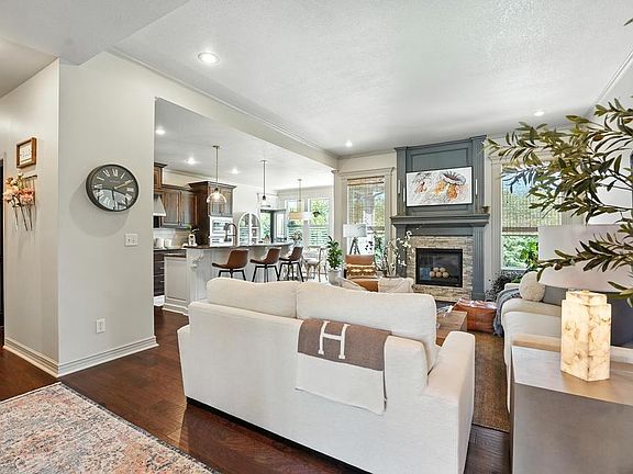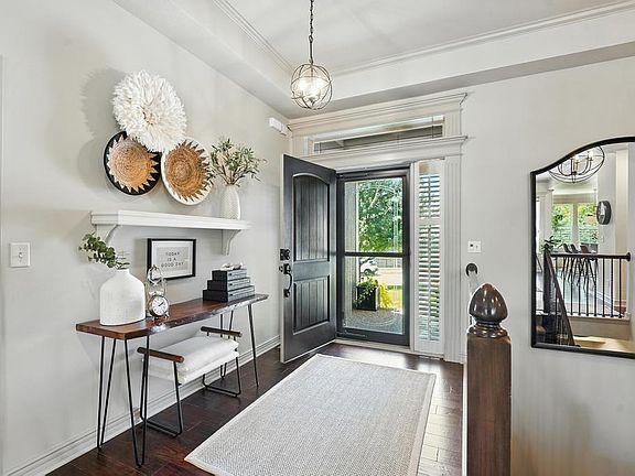 Custom home on gorgeous private lot at back of neighborhood has resort like backyard. Arrive to find lush green lawn, established landscape, fresh exterior paint & 1 yr old roof. Front porch is welcoming, door opens to stunning open floor plan, upgraded finishes include new light fixtures/fans, custom plantation shutters & other window treatments, extensive trim & upgraded hardware throughout home. Great room w/gas fp, 10' ceiling & views of private backyard & pool. Wood floor extends from entry through all living space, primary bedroom & mudroom. Kitchen is a DREAM, large painted island and recently upgraded GE Cafe white/brushed brass appliances including gas cooktop, exterior vented hood, wall oven & microwave. Beautiful granite counters, custom tile backsplash, walk-in pantry. Dining area is surrounded by windows & door out to large covered deck, steps down to expanded patio & outdoor living space. Gunite pool, outdoor hardscape 2021. Off kitchen, a large drop zone at garage entry has boot bench w/storage and large laundry room w/built-ins & tile floor. Primary suite is situated in the back corner of the home offering privacy. Wood floors extend through the bedroom, wall of windows with custom shades overlook the covered deck & backyard. The primary suite bathroom is definition of luxury, tile floor, custom double vanity with fantastic storage & huge newly tiled shower w/large bench built in, dream walk-in closet. Opposite side of main level offers 2 spacious bedrooms with great closets. Hall bath redesigned with painted vanity, shiplap, upgraded mirror & fixtures, wallpaper accent wall & tub with tiled shower walls. Wide staircase leads to lower level family room w/ample space for media & games, door out to patio, pool & private backyard. 4th bedroom with massive walk-in closet & 4th bathroom. 2 huge storage spaces remain. Garage upgraded with epoxy floor, painted walls, mini-split hvac system & wired for electric car charging station. Great Storage Space