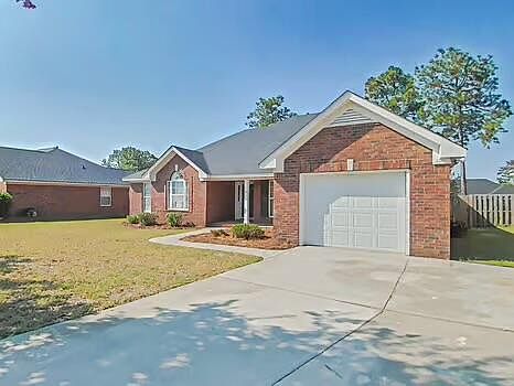 Welcome to this lovely all brick one level home! This home boasts a split floor plan. Step into the foyer to find the formal dining room on the right. The foyer opens up to the large family room with high ceilings and a fireplace with gas logs. Perfect for entertaining or cozy family gatherings. There are 3 bedrooms and a hall bathroom to the left of the family room. The family room leads into the dinette and galley kitchen. The spacious master bedroom is on the right side of the house and features a large walk-in closet and ensuite. There is a large backyard with privacy fencing. Conveniently located to Fort Eisenhower, I-20, grocery store, shopping, and restaurants. House sold ''as is''. New lower price.