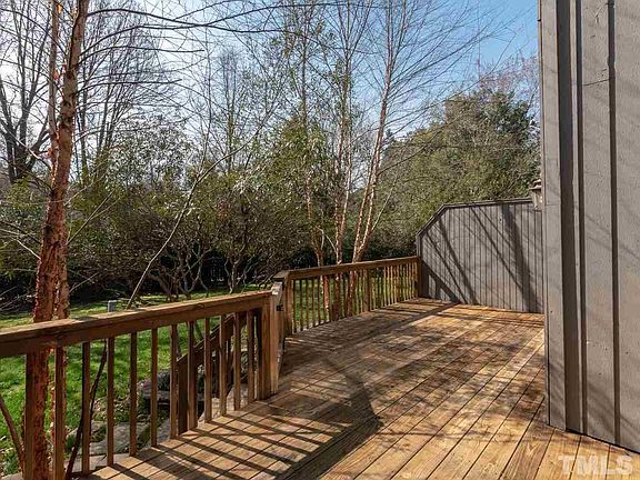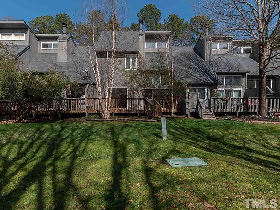 UPDATED & WAITING For You! Great location offers easy access to shopping, dining, theaters, parks, I-540 and RDU! Beautiful kitchen w/trey ceiling, refaced cabinets, rock backsplash, granite countertops, smooth top range & microwave. Gleaming hardwood floors downstairs. Masonry FP in Family Room provides separation from Dining Room and Living Room. 2 sets of sliding glass doors give access to oversized back deck. Master suite has private Loft, WIC and access to front balcony. Cozy private courtyard. Wow!