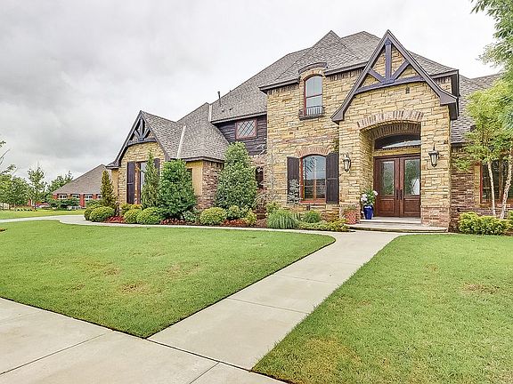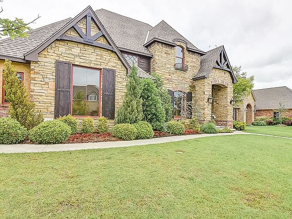 BUILDER'S PERSONAL HOME with a lake view loaded with upgrades! This beautiful home features 4 true bedrooms, 3.5 baths, separate study, large open living, formal dining, media room and a great space for crafts or exercise. The gourmet kitchen has two islands and stainless commercial grade Kitchen Aid appliances. It's open to the breakfast and living areas with full view windows facing the custom pool, hot tub and lake. The master suite down is isolated with an ample sitting area. DON'T MISS THIS OPPORTUNITY to own an incredible home with a water view! The seller has an active Oklahoma Real Estate Broker's License.