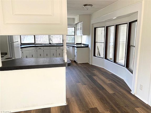 Back on Market through no fault of seller ... This spacious unique mobile home is technically a single-wide, but has a nice addition that basically doubles the interior living space. Most of the addition is a completely open bright approx 46' sunroom, then also includes a bonus room with a closet that could easily be used as a bedroom or office. The kitchen is unusually large and has a great number of cabinets. The entire interior has been nicely renovated in 2023 with brand new LVP flooring, new paint, light fixtures, and new central air system was added to electric furnace in March 2023. The chainlink fenced yard encompasses most of the almost one acre of land and the nice concrete driveway. Property sits comfortably at the end of a quiet cul-de-sac with plenty of mature trees that makes it seem quite rural, but very centrally conveniently located to Winston-Salem, Greensboro, High Point, and Kernersville. Come see for yourself.