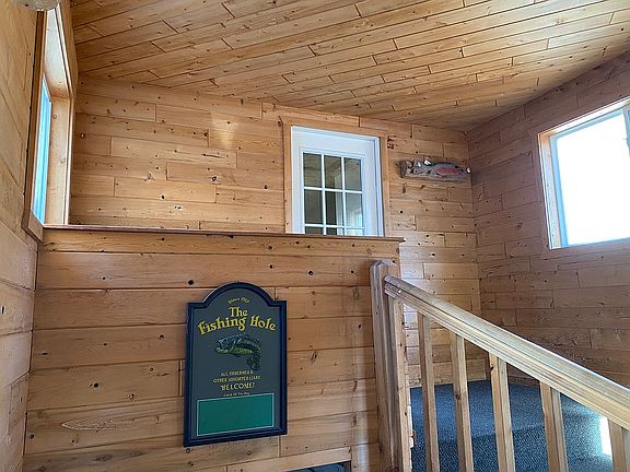 New roof on 2 car attached garage with 10ft ceilings, composite front decking, new windows, back deck , hot tub, grill area, 4 bedrooms 2 full bath, laminate and carpet, fireplace, upstairs is office area and master bedroom/bathroom, shed, large flat back yard with chicken coop and 3 raised garden beds