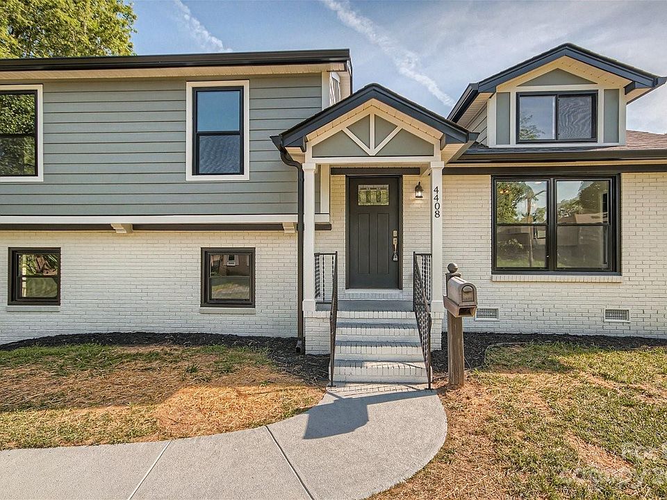 Light, bright and beautifully renovated with fantastic outdoor living space, including a newly sodded, large, flat back yard with huge stamped concrete patio/firepit and a private, 16' x 12' balcony with French door access off of the primary suite! Located less than 10 minutes from South End, Uptown, Charlotte/Douglas, interstates, and more! ALL big-ticket items in this home are brand new including roof, exterior siding, AC, furnace, black vinyl windows, gutters and downspouts. Brand new white, soft-close cabinetry with quartz countertops, stainless steel appliances (refrigerator included), ceramic tile and LVP flooring throughout. Lower level was previously one large space but has since been transformed to include a 4th bedroom, 2nd full bath, laundry/mudroom and additional living space with direct access to the back yard. All closets include custom closet organizers, and a new, 10' x 10' shed has been installed outside for additional storage. Book your showing today!