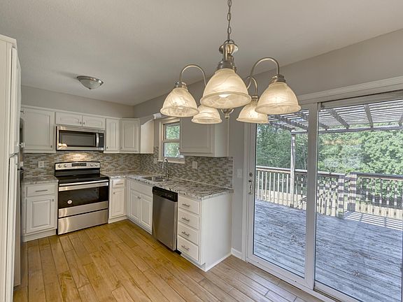 Complete rehab for this property. New to property: paint, bathroom fixtures, stainless steel appliances, granite countertops, flooring, etc. Property has 2 car garage with a fenced in backyard. This home features a nice back deck with stairs leading down to the fenced in yard. Topping Elementary School is located across the street. Easy access to both 435 and 35 highway, less than a 2 minute drive to both highways. This is a 1 year lease. There is a background check that is $50 per tenant over 18 years of age. Pets are allowed but now more than 2 and there is a $250 non-refundable pet deposit and a $25/pet per month pet rent. Renters are responsible for all utilities and yard maintenance. No smoking is allowed in the house.