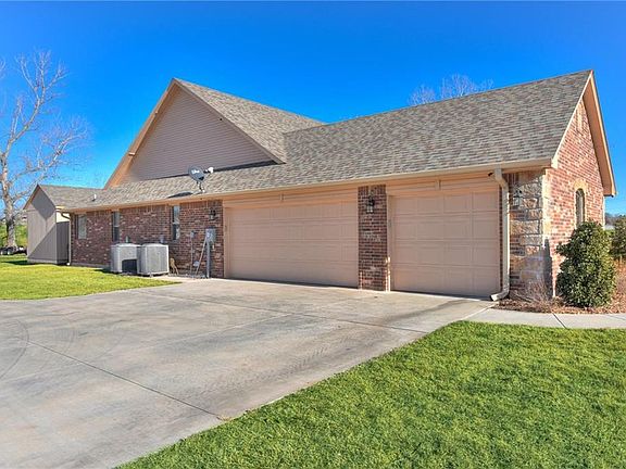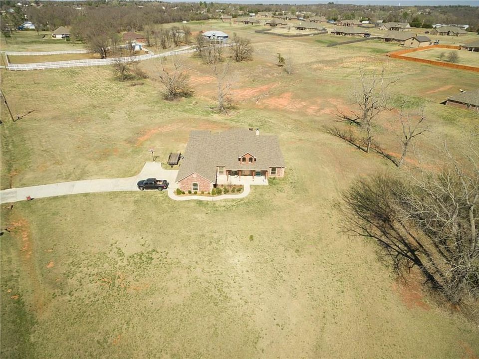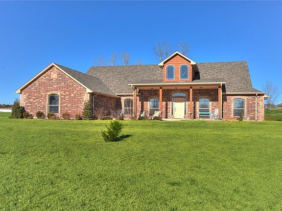Beautiful home on 3 acres in award winning Choctaw Schools! Ideal location with easy access to I-40, providing a 20 minute commute to Shawnee or Midwest City. No HOA with plenty of room for a shop building and/or horses! Take in the country view from the large covered porch or patio. The interior boasts an open concept floor plan with floor to ceiling brick fireplace, crown molding and arched doorways. You'll love this kitchen--stainless steel BOSCH appliances, walk in panty, island, breakfast bar, travertine tile backsplash and tons of storage space! The master suite is oversized with bay window seating, corner tub, double sinks, tile shower, private toilet room and walk in closet. Media room features a projector and surround sound (negotiable), but could easily be used a sturdy, second living room or game room. Tons of upgrades: *WALK IN SAFE ROOM *SPRINKLER SYSTEM *8 CAMERA SECURITY SYSTEM *SMART GARAGE DOOR OPENERS *SMART LIGHT SWITCHES *NEW STORAGE BUILDING *LARGE TREES*.