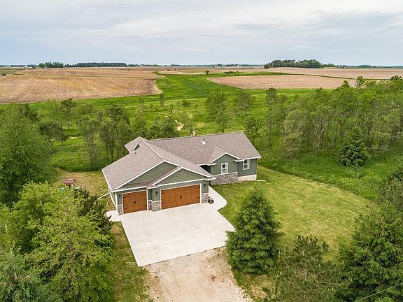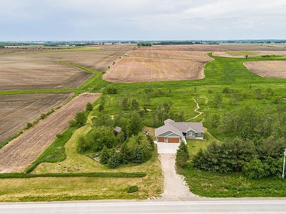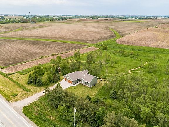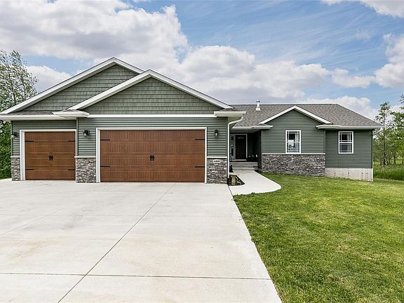 3 year old ranch style home on 3 acres. Main floor features an open floorplan, with vaulted great room; beautiful hardwood flooring; kitchen with quartz countertops, pantry, and breakfast bar; primary suite with tub/shower and walk-in closet; 2 additional bedrooms; another full bathroom; laundry room; and a 3-seasons porch off dining area. Lower level offers a spacious rec room, 2 bedrooms, and a full bathroom, and plenty of storage space (including a safe room). 3-stall deep garage, shed, garden beds, a small pond, wooded backyard, and county taxes are added benefits. The house is heated via a heat pump or wood burning furnace.