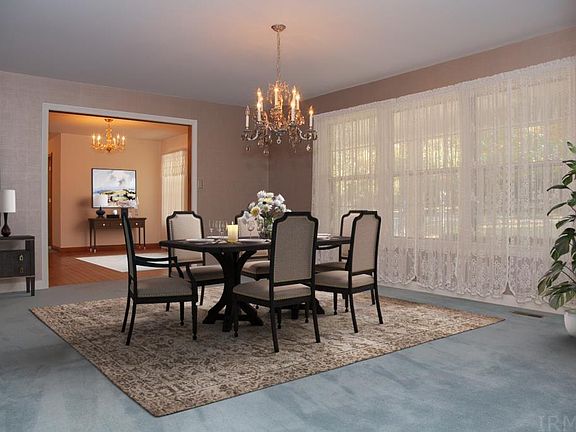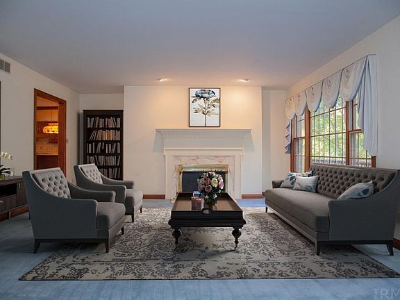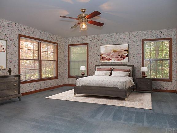 Looking for a 4-bedroom, 3.5 bath AMISH-BUILT traditional home? Look no further! This hidden gem is nestled on a beautifully wooded and secluded 4.5-acre lot near Evansville Country Club. The home features 4,400+ sq. ft. with 2,800 sq. ft. in the unfinished, pre- plumbed, WALKOUT BASEMENT. The appealing landscape welcomes you to the extended front porch that includes a cedar swing. Upon entering, the LARGE FOYER opens to the formal dining and living room. You will love the HARDWOOD FLOORS in the entry, kitchen and family room, the SOLID WOOD DOORS, and the Baldwin Brass hardware. The ELEGANT DINING ROOM features a lovely full-leaded glass antique chandelier. Oversized windows allow plenty of sunlight, especially in the FORMAL LIVING and HEARTH ROOM. These two rooms include fireplaces and French/sliding doors that open to the deck where you’ll enjoy amazing views of the wooded, expansive back yard. The KITCHEN features a vaulted ceiling, a large island, stainless-steel appliances, double ovens, Jenn-Air cooktop, and Tiffany-style, stained glass lighting fixtures. The main-level, PRIMARY BEDROOM SUITE includes oversized windows with a backyard view and a sitting area with walk-in closet space. The PRIMARY BATH features a garden spa jetted tub, standup shower, and double vanity with Corian countertop. The main floor staircase to the upper level offers an expansive loft/living area, two additional bedrooms, each with a full bath, and plenty of storage. The 2-story garage includes stairway access to the basement. The owner is offering a home warranty for peace of mind. This home has never before been offered for sale and will not be on the market long.