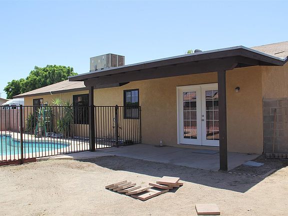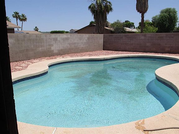 Practically ready to move into. Freshly painted outside and mostly new paint inside. Large fenced pool. Yards are clear palettes. New carpet in living room, wood casings on windows, new shower valves, faucets and shower heads, overhead fans in all bedrooms. Tile shower in master and tile surround in hall bath. Full wall closet in master. Cabinets in garage.