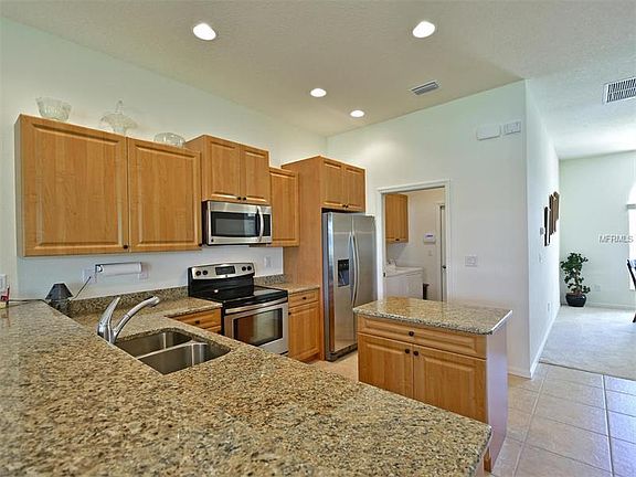 Beautifully maintained 4 bedroom home in Sugar Mill Lakes. This Geartz Windsor model was recently built in 2015 and still shows new. When you enter this great home you will notice the separate living and family areas that are terrific for families or those who want a quite place to sit and visit without the TV noise. To the left the large master bedroom with walk-in closets and an oversized master bath awaits. The master bath is well appointed with a garden tub, dual sinks and a large walk-in shower with seamless glass. Off of the master and living room lies the large L-shaped covered and screened lanai and large yard. If you love to cook for family and friends the kitchen is big enough for everyone to gather and help. With stainless appliances and granite tops this is a terrific place to prepare dinner for your loved ones. The split plan design has all 3 guest bedrooms behind a pocket door for privacy. Everything in this house feels bigger and the extended ceiling height is a big reason for this. If you are also the type that likes to park in your garage this garage is large enough to fit a large SUV...don''t believe it? Come check out the one currently parked there. This is a terrific home you will want to see, so hurry and schedule your appointment.