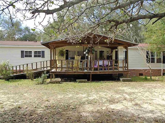 So much room, so little money! Over 2000 SF of living area on almost one acre, less than 2 miles to the interstate and handicap accessible! Large 20 x 12 covered front porch with ramp and huge 38 x 26 rear deck with ramp. Inside, there are beautiful wood laminate floors, high cathedral ceilings, and tons of storage. The living room has a wood burning fireplace that has never been used. The kitchen has a large center island and tons of cabinet and counter space. The laundry room is 13 x 12, great for office or crafts, has a sink, a built in desk, an extra pantry and small butlers pantry or coffee station. Each of the large bedrooms have walk-in closets and ceiling fans. The bathrooms have comfort height toilets and grab bars. The entire lot is fenced, there are two storage buildings, beautiful large oaks and other flowering bushes and trees. Seller will provide a one year warranty for added peace of mind. Call today for your personal tour!