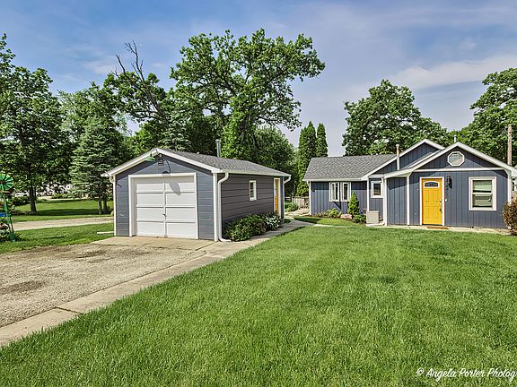 Welcome Home!! This adorable WATERFRONT home is completely updated and features 2 Bedrooms, 1 Bath and 1.5 garage on the Fox River CHANNEL! The interior of the home was mostly remodeled in 2017 and features a nice sized kitchen with stainless steel appliances, vaulted ceiling, breakfast bar and laminate flooring throughout; except the 2nd bedroom which has carpet. Other recent improvements include: New roof (complete tear off home and garage in 2022), Gutters (2023), Garage door opener (2023), Professionally painted interior and exterior (2023), Water heater (2023), New well pressure tank (2023) and NEW windows with transferable, lifetime warranty (2024). This is the perfect starter home or empty nester pad! In addition to the garage, this home has plenty of space for all the toys with an extra large side drive, approx. 60 X 80. The exterior also features a deck for entertaining in your serene waterfront backyard. This home also boasts it's own pier and sits on almost one acre of land. All of this in HIGHLY desired Prairie Grove School District. Feel like your on vacation everyday with little to maintain! Start summer off right making smores by the water, fishing and kayaking right from your own backyard! Make the cold Illinois winters more enjoyable snowmobiling, ice fishing and skating all from the comforts of home. This is a tight nit golf cart and waterfront community. The dock to the right is part of the property. Don't delay, call for a private showing today! Information is deemed reliable but not guaranteed.