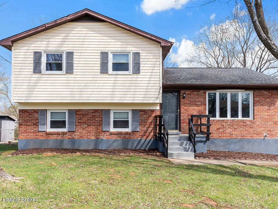 This charming quad-level home in the Chenoweth Hills neighborhood offers a perfect combination of comfort, versatility, and convenience. The bright and welcoming living room seamlessly connects to the eat-in kitchen, creating an ideal space for sharing meals and making memories. On the upper level, you'll find three generously sized bedrooms and a full bathroom. Each bedroom provides plenty of possibilities for creating a personal retreat or functional space, while the well-appointed bathroom enhances convenience. The lower level features a cozy family room with a charming brick fireplace, perfect for relaxation, movie nights, or casual gatherings. This level also includes a fourth bedroom and an additional full bathroom. The basement features a recreational area and a dedicated laundry space. The walk-out access to the backyard further enhances the home's functionality. The fenced backyard serves as a private haven for outdoor activities, gardening, or quiet relaxation. The detached 2.5-car garage delivers ample space for vehicles, tools, and extra storage, combining convenience with practicality. Conveniently located near Billtown Road and Watterson Trail, this home provides easy access to parks, local dining, and shopping, making it an exceptional choice for comfort and accessibility.