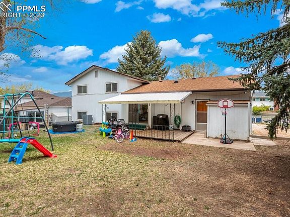 Welcome to your beautifully updated tri-level dream home conveniently located near Peterson AFB, Fort Carson, great dining and shopping options!! This beautifully appointed 4 bedroom, 2 bathroom home boasts stunning views of Pikes Peak from the front yard and a gorgeous shaded backyard perfect for entertaining. As you enter the home, you'll be greeted by a warm and inviting living room with plenty of natural light. The floor plan leads you to the dining area and kitchen which features stainless steel appliances, ample cabinet space, an entry to the garage and a sliding glass to to the backyard. The upper level of the home boasts a spacious primary bedroom with its own entrance to the bathroom and two nice sized closets, as well as two additional bedrooms. The lower level features a cozy family room with a gas fireplace, perfect for movie nights or game day. The spacious fourth bedroom, laundry room, and beautifully updated bathroom complete the lower level. Step outside to your private backyard oasis, complete with a covered patio and plenty of space for outdoor gatherings and barbecues. Take in the breathtaking views of Pikes Peak from your front yard and enjoy all that Colorado Springs has to offer. Don't miss out on the opportunity to make this stunning home yours! Schedule a viewing, today!!