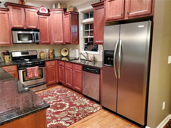Why wait for new when this beautiful townhome is move in ready. Great location in growing Powder Springs. Well maintained with Open concept on main floor with hardwood floors throughout. Stay warm by the fireplace, eat in the grand kitchen with granite, stainless steel, lots of cabinets and breakfast bar. Large dining area and office with private door includes shelving! Sleep easy on the upstairs level in the 2 oversized master bedrooms each with private bath and walk in closets. Upstairs hall laundry and walk in hall closet makes great storage. Lower lever with 2 car garage has partially finished room and additional room plumbed for bath, currently used for a work shop. Additional walk in closet to fit your bikes, holiday decorations etc. Enjoy comfortable nights sitting on your private spacious covered porch with lighting and ceiling fan. Short walk to downtown Powder Springs shops or restaurants. 1 block from Thurman park and the new Hardy Family Amphitheater