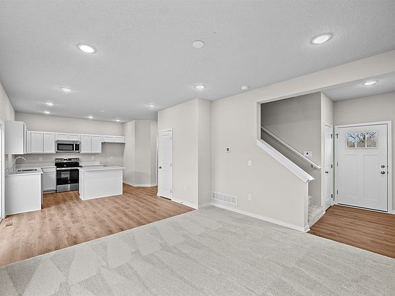 Located in the Southeast Polk School District, this Lansing, two-story plan by Hubbell Homes in Grover Woods blends comfort and convenience on Des Moines's northeast side. With no HOA dues, a City of Des Moines property tax abatement, and a one-year builder warranty, this home offers incredible savings and a peace of mind. Featuring 3 bedrooms, 3 bathrooms, and 1,538 of living space. The great room flows into the dining area and kitchen, which includes LVP flooring, quartz countertops, pantry, center island, and GE stainless steel appliances—dishwasher, microwave, and stove. Sliding glass doors off the dining area lead to a concrete patio, perfect for outdoor gatherings. Upstairs, the primary suite provides a private retreat with dual sinks, walk-in shower, and a generous walk-in closet. Two additional bedrooms, full bathroom, and a dedicated laundry room complete the upper level, providing space and privacy for family and guests. The basement is ready for future finishing, with 15-year waterproofing, sump pump, and passive radon system in place. Additional highlights include a two-car attached garage and an electric fireplace. Experience this beautifully crafted 2-story home in a community designed for comfort, style and quality living. Work with Hubbell Homes preferred lender to receive up to $1,750 in closing costs.
