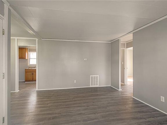 Great starter home! Single level living, whole home on one level including the laundry! Nice Front porch to keep your guests out of the weather and a storm door with newer front door. As you enter into the home you see newer LVP flooring through most of the home. Nice bookshelf inside the front door. Blinds on the windows. Popular grey interior paint throughout. Kitchen has nice cabinets with frig and stove/range to be provided. Walkout to the back yard right off the kitchen/eat in dining room.