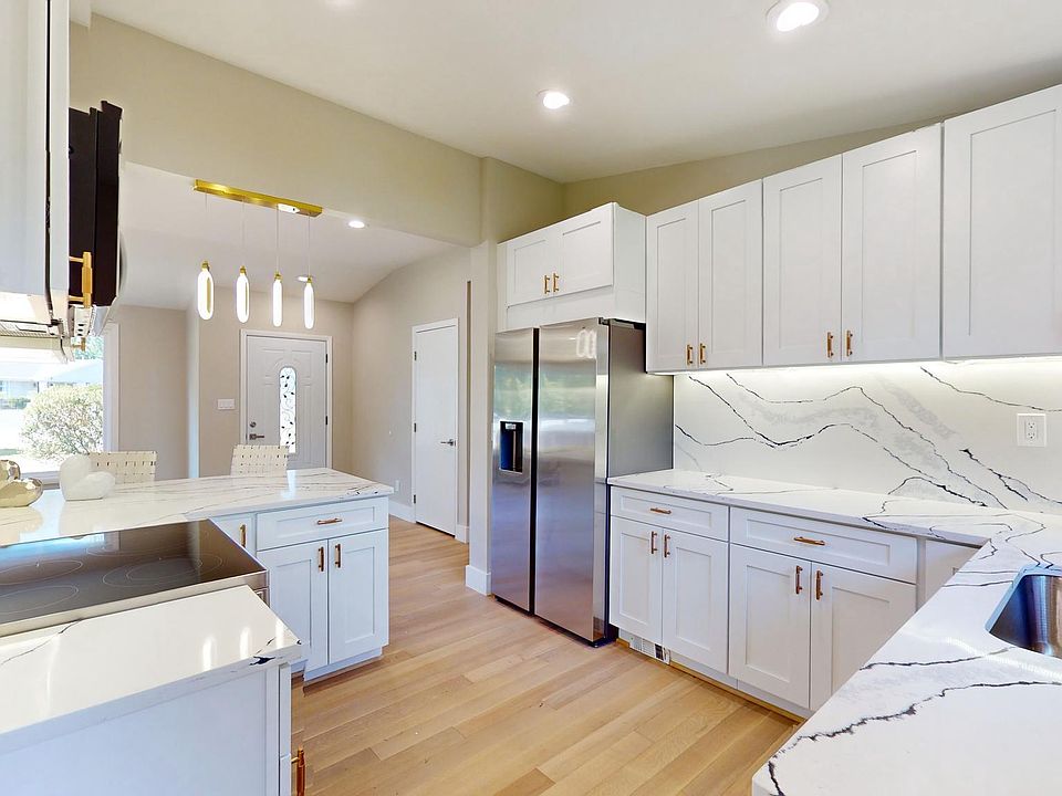 Welcome to this completely renovated 4-bedroom, 3-full bathroom home spanning above 3,000 square feet. Upon entry, you’ll be greeted by a modern gourmet kitchen featuring exquisite quartz countertops and stainless steel appliances. The spacious living area boasts a cozy fireplace, and there’s an adjacent office space. The main level houses three fully renovated bedrooms and two full bathrooms, complemented by hardwood floors and recessed lighting throughout. Venturing downstairs to the basement, you’ll be impressed by the impeccable craftsmanship, complete with a stylish bar and a dedicated laundry space. Two separate doors lead to the outside, one from a basement bedroom and another from the opposite side of the basement. The full bathroom showcases elegant tiles and fixtures, rounding out this remarkable home. Two brand new high-efficiency HVAC units with four zones of control, New outside shed....... Don't miss this Jem. Professional photos will be posted soon