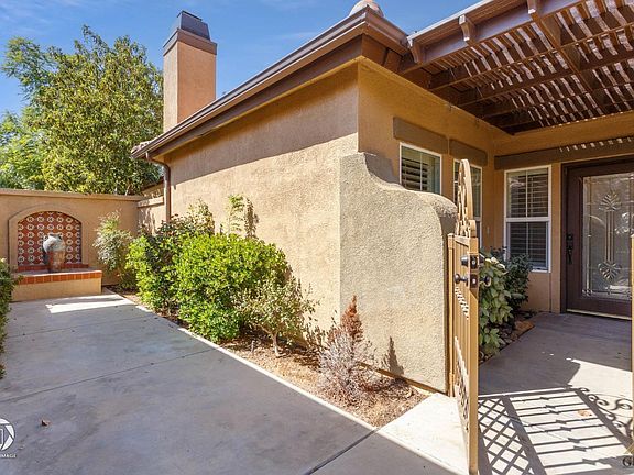 As beautiful as this lovely home is from the front, you won't believe what it looks like inside! Wood flooring provides a continuity throughout, plus there is new granite in the kitchen, a 5-burner cooktop, fresh paint, new pantry door and a new refrigerator included. The new washer and dryer are part of the package too. The family room has a lovely fireplace with insert, but the spectacular and spacious enclosed patio is where you will want to spend your time. There are multiple skylights, recessed lighting, and the polished brick-type flooring just invites entertaining. With multiple doors and windows that surround this room, looking out to the lovely backyard with a large waterfall just invites you to relax. Don't forget the additional guest house that has it's own bath with a shower and small counter with a sink and mini-refrigerator. Think artist hideaway. There is a lovely main bedroom and bath plus a secondary bedroom both with walk-in closets. You will not be disappointed.