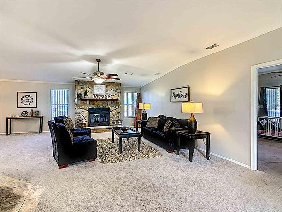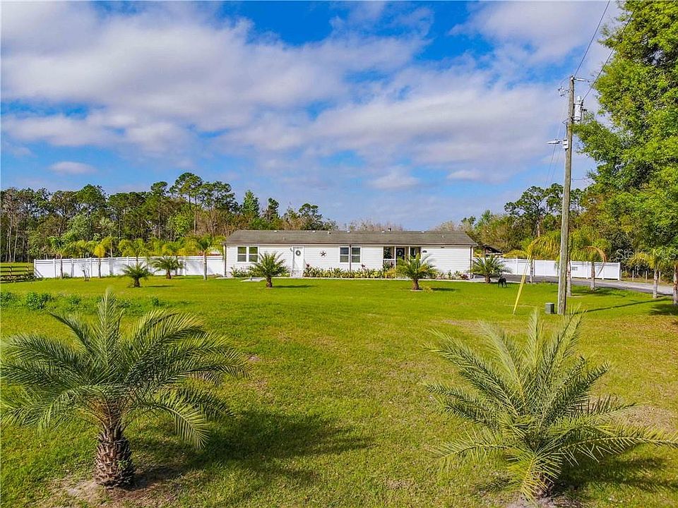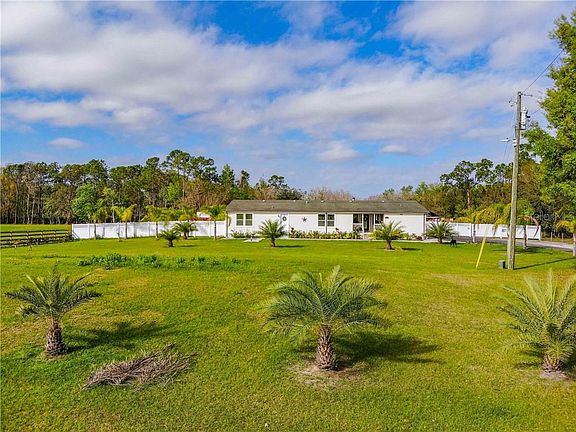 Looking for a country style living just 20 minutes away for the city of Kissimmee? Stop searching! This AMAZING property is seating in a little over 5 acres of high and dry land and offers an open concept plan with crown molding throughout the house, a Living room with wood burning fireplace, a Kitchen with 42" wood cabinets, large game room for entertainment, and much more. The outside have different gazebos for outside entertainment, and storage area. Completely fenced, patio pavers, water softener and much more! Schedule your private showing today this property won't last. Seller motivated, bring your offer!