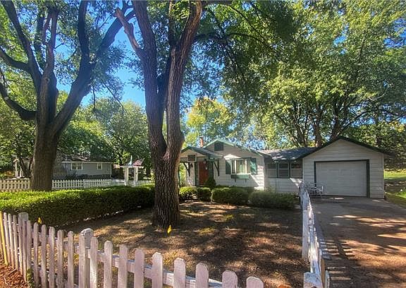Americana bungalow in "Original Towne" Olathe! Charming white picket fence, majestic Elm trees and evergreen boxwoods line the walk to the covered front porch. Arbor with cupola leading the the back yard. Make plans for your English Garden and vegetable gardens and enjoy the privacy of nature that surrounds this property. Back to 14 Acre estate complete with grazing lamas. Owner is selling "as is" in its present condition.
