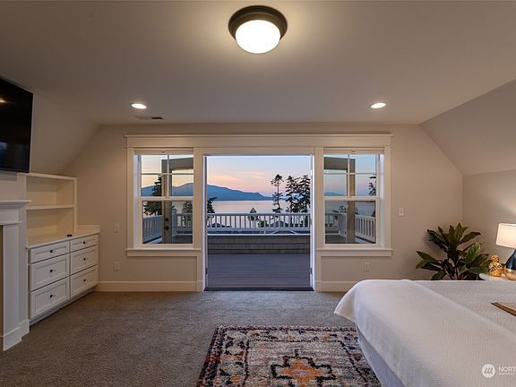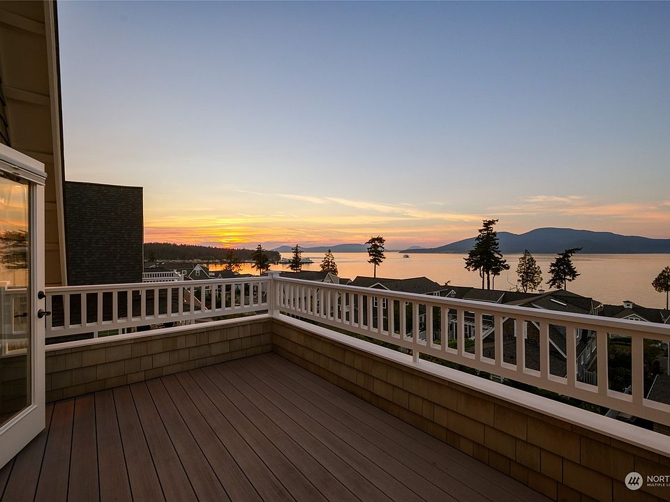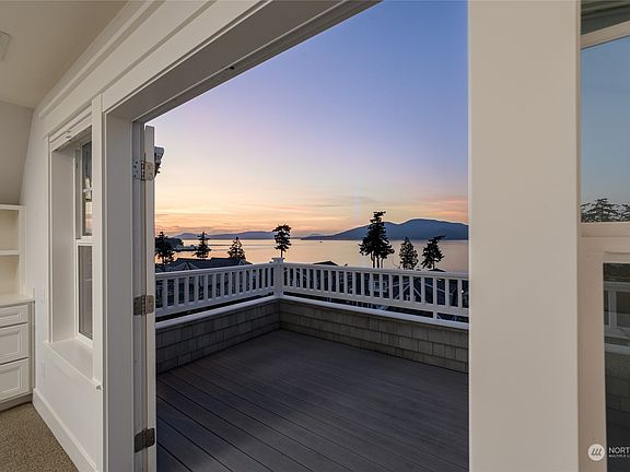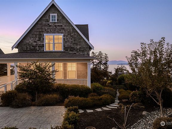 Stunning Cape Cod home in desirable San Juan Passage neighborhood with panoramic views of the San Juan Islands. This single-owner home has been impeccably maintained and feels brand new. Amenities include 9’ ceilings on the main floor, custom millwork and crown molding throughout, hardwood floors, and a beautiful kitchen that opens to the living and dining rooms all showcased by walls of windows with ocean views from every angle. The expansive primary suite offers custom built-ins with a fireplace, a gorgeous bathroom, and a private patio. Additional offerings include 2 guest suites, covered porches, an extra deep garage with a bonus room and bath, low-maintenance landscaping with irrigation, upper/lower parking, and an elevator.
