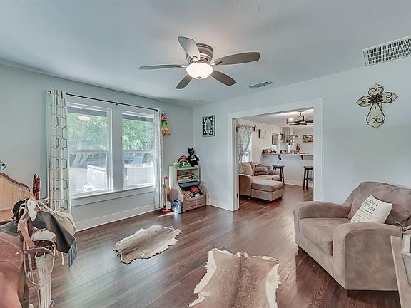 Beautifully updated with character and appeal. Open concept living with an abundance of natural light. Nice-sized yard with mature shade (Red Oak and Pecan) trees and covered front patio. Large yard makes wonderful play area for children. This home has a country-feel and isn't far from town. Potential for additional study to be turned into a 2nd bedroom. The shop has electricity and foam insulation. This is a must see today!