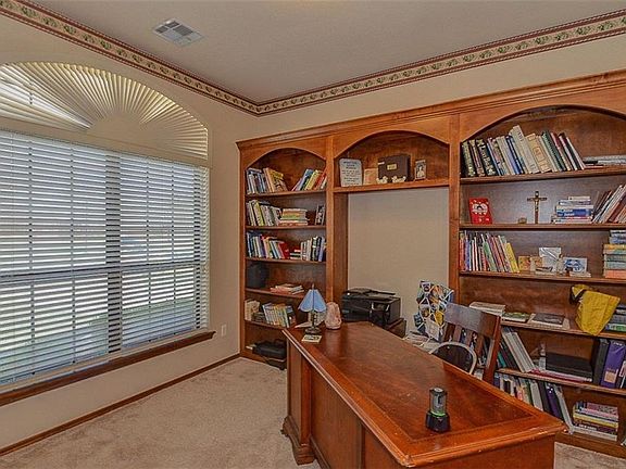 Exceptional Carrington Place Home. Beautiful landscaping, 3 bedrooms, study with a wall of bookshelves, formal dining, 2 full baths, 3 car (tandem) garage. Recently install wood flooring, granite counter tops in kitchen, kitchen island, kitchen backsplash, bathrooms. Oversized interior utility room, in ground storm cellar. Master bath with whirlpool tub, shower, walk in closet w/season rods. This a truly a must see. Community pool, walking trails, parks all offered in this neighborhood. Seller prefers to close the end of May 2017.