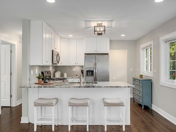 MULTIPLE OFFERS RECEIVED!! Incredible Opportunity! Beautifully updated Ranch Home in prime North Downers Grove within 1 mile of Downtown Downers Grove & Situated on an expansive 180Ft Deep Lot. Wonderful location just 5 Blocks to the DG Metra Belmont Express Train Station, Henry Puffer Elementary School, and Hoopers Hollow Park. So many amazing updates & this home is absolute perfection with 2,300 SF of total Finished Living Area (including the basement). 3 Bedrooms, 2 Updated Full Bathrooms, Full Finished Basement with large Family Room, Bonus Room & Full Bathroom, oversized 2 car garage, fully fenced backyard, Stunning Updated Kitchen, Newer Windows, Newer Mechanicals, & an Ideal Open Layout. Gleaming Solid Hardwood floors throughout the first floor and all the bedrooms! Spacious living room with bay window, open dining area to the kitchen, and bright updated kitchen. Amazing Kitchen features white shaker 42'' upper cabinets, undercabinet lighting, granite countertops, glass tile backsplash, stainless steel appliances, breakfast bar seating for three, and walkout to the amazing patio area. All 3 bedrooms feature hardwood floors and ample closet space. First floor includes an updated full bathroom with marble countertop double sink vanity and bathtub with showerhead & handheld sprayer. Finished basement includes large recreation room/Family Room, flex bonus room with en-suite full Updated Bathroom with walk-in shower, and Laundry Room with Washer/Dryer and large storage area. This home is immaculate and truly move-in ready. Newer windows, New Hot Water Heater (2021), New Dishwasher (2020), Trane Furnace (2014), Roof (2009), Professionally Painted, Updated Lighting Fixtures, and large fully fenced yard with storage shed. Award winning schools; Henry Puffer Elementary, Herrick Middle, and Downers Grove North High School. Welcome Home.