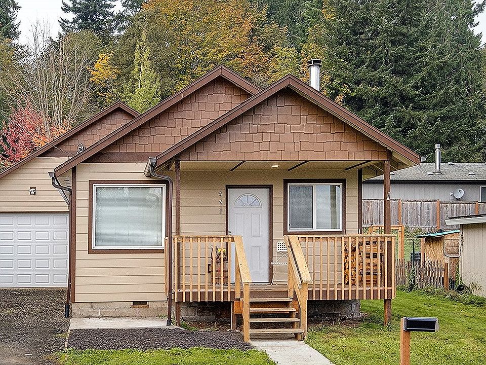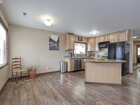 Updated & Cozy 2 bedroom/ 2 bath home with 1 car attached garage. Greater starter home that features open living room, kitchen & dining room. Kitchen w/ island, hickory cabinets & granite countertops. Laminate hardwood flooring throughout the house. Barn doors on bathroom & closets. Not in flood plain, driveway parking & partially fenced yard. Come enjoy small town living at an affordable price!