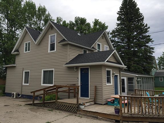 Enjoy this 1.5 story home with option of all main floor living. Features main floor laundry, bedroom, bath, nice kitchen, separate dining area, some beautiful hardwood flooring, 3 bedrooms up (one does not have a built in closet), full bath upper level, 3 garage stalls, storage shed, deck, metal siding, sanyo unit wall unit, handicap ramp into home. Buyer to verify square footage.