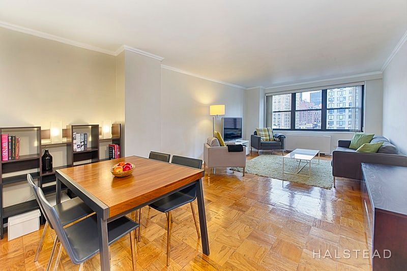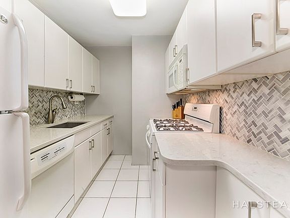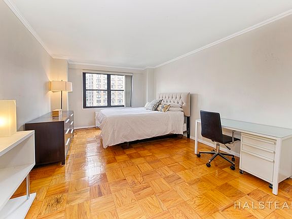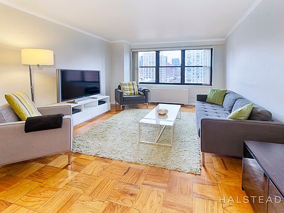 Click on "Video Tour" to really see this spacious, peaceful and sun-filled one bedroom home, approx. 750SF+ with soaring city views, including the Empire State and Chrysler Buildings. Enjoy a huge, bright living room, newly painted and skim coated, which includes a huge walk-in closet and a utility closet, as well as a designated dining area. The spacious chef's kitchen was just renovated in 2017, and features Silestone countertops, marble backsplash and Kohler sink. The giant-sized bedroom is large enough for a King Sized bed as well as an office area, and boasts one wall of windows and another wall of closets. The custom spa-like bath was redesigned to offer ample storage not only under the sink, but with a medicine cabinet as well as a bonus cabinet behind the door. There is also a large linen closet right next to it. Enjoy the convenience of individual HVAC units in each room for economical and maximum all year round comfort. Spruce Ridge House is a pristine 24HR DM building, with a great staff, pretty lobby, a live-in resident manager, a renovated card-operated laundry room (only $1.25 a load!), a planted roof deck with jaw-dropping city & river views, a free bicycle room, storage and more. Pet Friendly too! Terrific Kips Bay location; Gramercy, Flatiron and Murray Hill adjacent. Close proximity to Trader Joes, Fairway, Eataly, Madison Square Park, 4/5/6 and N/R subway lines. Subletting is permitted with approval after two years of residence. Sorry, no pied-a-terres or co-purchasing. Temporary assessment of: $181.99.