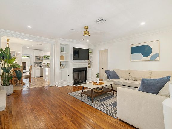 Classic Key West style cottage with pool and guest house in the heart of Old Northwood. This lovingly restored and updated private compound features a 2 bedroom, 1 bath main house with a spacious 1 bedroom, 1 bath guest cottage separated by a tropically landscaped courtyard complete with gas heated pool and spa. Historic Old Florida details include gleaming original hardwood floors, crown moulding and an elegant fireplace with built in shelving. You enter into a sunny Florida Room with plantation shutters and French Doors to the living room. The spacious eat-in kitchen features white shaker cabinetry with poured concrete countertops, farmhouse sink, stainless steel appliances including a Sub-Zero refrigerator, pot-filler, built-in microwave, and gas range for the chef. A cozy banquette has seating. Both bedrooms have historic charm and the primary has glass doors overlooking the enchanting, covered lanai and the pool. The roomy bath has a wide double vanity, soaking tub and separate frameless glass-enclosed marble shower.