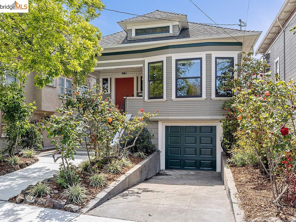 Welcome home to this light-filled tastefully renovated Craftsman. Front porch provides a gracious entry. Wide plank oak wood floors throughout - the coved ceilings showcase quality artisanship. Spacious dining room is ideal for sizeable entertainment plus living room is surrounded by windows. The big rehabbed eat-in chefs’ kitchen has a skylight and quartz countertops - the kitchen has direct outdoor access. On the main level there are two well-sized BR's plus a full bath. A few steps up lead to the stunning ensuite primary BR with vaulted ceilings, bay window reading nook, and two large closets. The tile bath off the primary has a spa-like walk in shower. Steps down from kitchen is the supremely versatile and generous family room complete with French doors that lead out onto a stone patio providing ideal indoor/outdoor flow. Full basement and attached garage deliver tremendous storing options. Outside, is the south facing yard - private and beautiful. Recently rebuilt wood fence, native plantings, established fruit trees (Asian pear and apple), lawn and a trellis full of blooming jasmine. Serenity now. Fabulous Temescal neighborhood – adjacent to Telegraph Ave, close to MacArthur BART, dedicated bike lanes and Mosswood Park. Walkscore 90, Bikescore 96. Open 4/29 and 4/30 2-4:30