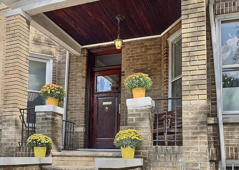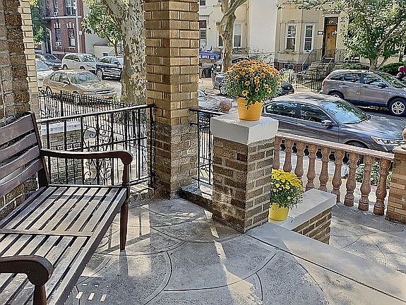 OPEN HOUSE BY APPT ONLY FOUR bedrooms, THREE baths, and a large deck and back yard -- for the price of a Park Slope condo! You'll have room to spread out, work in separate spaces, and entertain outdoors. Original details abound in this pre-war brick townhouse. Gracious proportions and soaring ceilings set off wide moldings, beamed ceilings with medallions, and sliding pocket doors. Gorgeous hardwood floors feature red oak, mahogany, and maple borders, and the north-south orientation and sheer quantity of windows means phenomenal light throughout. A welcoming front porch features a wood-slat ceiling and a professionally-restored, century-old front door with stained glass detail, opening onto a mosaic-tiled entryway. Through an elegant foyer, you'll find on this level over-sized living and dining rooms, both with sunny bay windows, the first of three renovated bathrooms, with shower and tub, and a renovated eat-in kitchen with windowed dining nook, leading out to a large deck overlooking the back yard. Grill or relax on the deck, connected to the house via a glass door, and down from the deck to the garden below, where there is currently a bench to relax, and a private playground amongst the trees and gardens. The kitchen renovation includes new wall insulation, plenty of cabinets, under-cabinet lighting, quartz countertops, all stainless-steel appliances, and stainless backsplash tiles. Enjoy colorful sunrises from the roomy breakfast nook, or step out onto the deck to enjoy that coffee amongst the apple-tree branches. Upstairs, at the top of an elegant stairway, lit by a stained-glass skylight, there is another renovated full bathroom with it's own original skylight, and four bedrooms, all with excellent closet space, gorgeous hardwood floors, and wonderful light. On the lower level, there is space for a fifth bedroom, playroom, gym or office, plus a separate laundry room. With its own entrance and another full bathroom, this floor can even be used as an in-law or guest suite. A new roof was installed in 2019 as well as a large gas water heater. Located on one of the most desirable tree-lined blocks in central Bay Ridge, garden-to-garden with the landmarked Doctor's Row, and just down the block from the subway (R train at 77th). Schools, parks, libraries, a phenomenal restaurant row, shore parkway, and the shopping convenience of 86th Street, are all within reach.