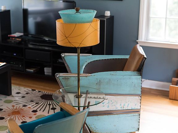 "expanded" cape with modern accents. Fireplace in half-finished basement as well.