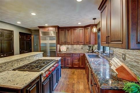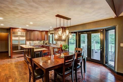 - Kitchen: Breakfast Bar, Center Island, Custom Cabinetry, SolidSurfaceCounter, Eat-In Kitchen, Pantry