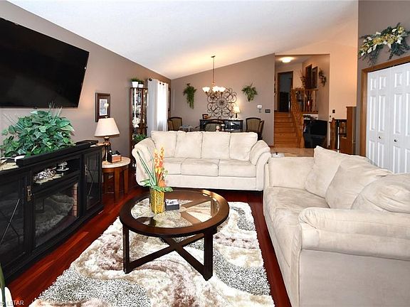 Spectacular 4 level back-split home located on a quiet cul-de-sac in Summerside near schools, bus routes, shopping and easy access to the 401. This home features 3 +1 bedrooms, gleaming hardwood floors throughout, an eat-in kitchen with cathedral ceilings including newer appliances, a large family room with gas fireplace, bedroom and 3pc,. bathroom in the 3rd level and spacious games room in the 4th level. Side door entrance from kitchen leading to a fully fenced rear yard with private elevated wood deck and above-ground saltwater pool. There is a gas line available for hook up to the BBQ as well as the pool heater, currently not hooked up. Updates of this home include asphalt shingles (2014), furnace (2017), new storm doors (2016), 2 Garage doors and openers (2017), Above ground salt-water pool (2017) Gazebo (2018) Note - driveway is being relaid April 19th and 20th and pool will be opened prior to the closing the of the property.