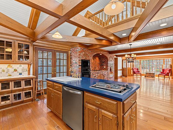 This amazing home is filled with character and craftsmanship from top to bottom. From the time you walk in the door, you see custom woodwork, gleaming hardwood floors, stained glass windows, and large rooms. The kitchen is oversize and features antique brickwork, custom hand painted backsplash tiles, and a vaulted ceiling with beam accents. The kitchen is flanked by a den with a fireplace and large windows overlooking the front yard. The great room is warm and inviting with antique brick flooring and lots of windows and French door leading out to the back yard and patio. The primary bedroom is also downstairs and features a luxurious sitting room with antique brick flooring, a fireplace and vaulted ceiling. The main bathroom is spectacular and makes you feel like you're in a spa. The walk in room size main closet with custom built ins and cabinetry plus a vanity area finish off this stunning bedroom retreat. There is an additional office area and tv room downstairs. Upstairs are 2 more bedrooms and two bathrooms. There is also a bonus room with beautiful built in cabinetry upstairs. This property features a front porch, a screened back porch, a detached storage building, mature landscaping, and driveway all perfectly nestled on 1.97 acres with no HOA. This home is conveniently located just 30 minutes to North Myrtle Beach! Some images have been virtually staged. **Roof was replaced in 2022 along with all new skylights.